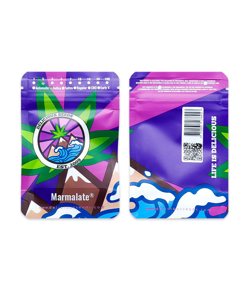 Титулованный сорт конопли Marmalate – это взрывоопасная смесь вкусов, полученная из самых сокровенных генетических запасов сидбанка Delicious Seeds. Родителями гибрида выступали не менее популярные и общепризнанные сорта с уникальными вкусоароматическими качествами и высокими показателями урожайности – индика-сативный гибрид Critical Mass и чистая сатива Lavender. В списке наград, завоеванных сортом, множественные 1, 2 и 3 места на различных конопляных конкурсах и фестивалях. Он на 30% состоит из генов сативы, а остальные 70% приходятся на индику.