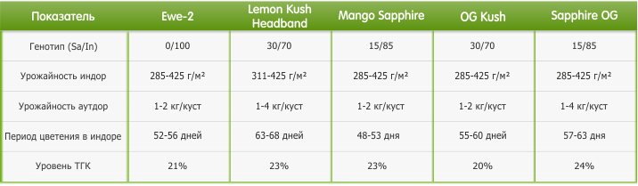 Феминизированный гибрид Ewe-2, который отличается быстрым периодом цветения и успокаивающими свойствами. Происхождение этого уникального штамма держится производителями в секрете!